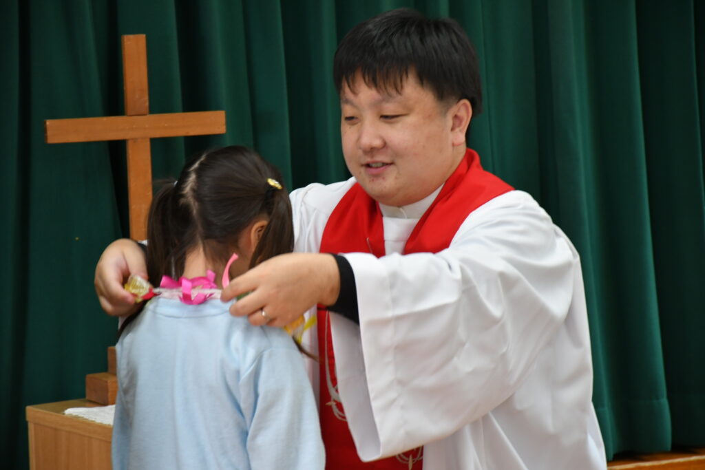 一人ひとりの成長を感謝し、讃美歌をみんなで歌ったり、神さまの祝福を受けてお祝いします。
