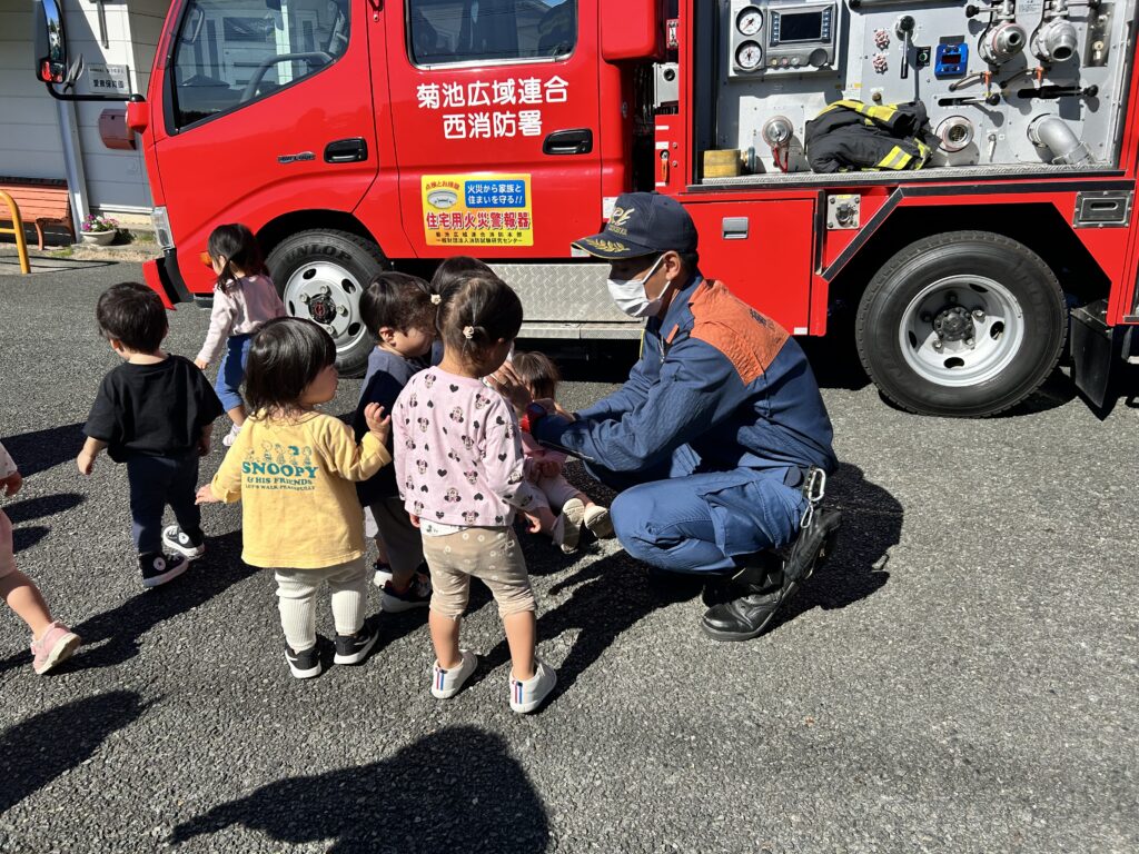 2025.11.10 総合訓練(全クラス) #お知らせ 年に1回避難訓練の様子を消防署の方に見てもらったり、職員の消火訓練や消防署見学をさせてもらいます。 子どもたちも毎年楽しみにしています。 上手に避難訓練が出来た事を見てもらった後は、消防車の見学を各クラス順番で回りました。 一覧へ戻る 前の記事へ 次の記事へ